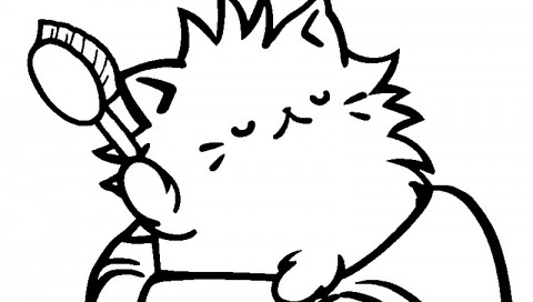 Kolorowanka do Druku: Uroczy Kot z Szczotką - Kreatywna Zabawa dla Dzieci i Dorosłych - 480x272 PSP