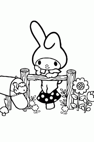 Kolorowanka do Druku - Urocza Postać z Długimi Uszami przy Płocie - Older iPhone & iPod