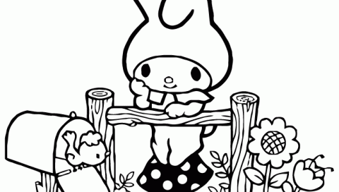 Kolorowanka do Druku - Urocza Postać z Długimi Uszami przy Płocie - 480x272 PSP