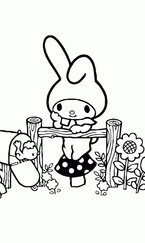 Kolorowanka do Druku - Urocza Postać z Długimi Uszami przy Płocie - 480x800