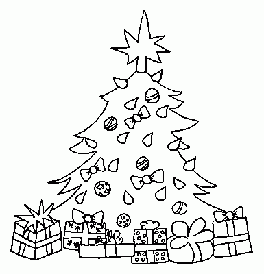 Kolorowanka Choinka z Prezentami - Świąteczne Rysunki do Druku - 385x400